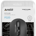 Производитель: A4Tech Модель: Fstyler FG20 - Тип: беспроводная, радио - Сенсор: 1000 – 2000 DPI - Кнопки: 3 шт, + колесо Описание