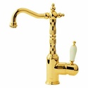 Назначение: для умывальника • Конструкция: однорычажный • Монтаж: горизонтальный • Материал: покрытие - золото • Монтажные отверстия: 1 отверстие • Форма излива: традиционная • Душевая лейка в комплекте: нет • Донный клапан в комплекте: есть