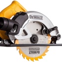 Дисковая пила DeWalt DWE 550, 1200 Вт, 5500 об/мин., диаметр диска 165 мм, защитная крышка, регулируемый угол наклона, установка глубины реза, желтого цвета Дисковая пила DeWalt DWE 550 предназначена для эффективной распиловки различных заготовок, изготовленных из древесины. Модель удобна в эксплуатации и очень надёжна. Двигатель, мощностью 1200-ватт разгоняет 165-миллиметровый пильный диск до 5500 оборотов в минуту, что позволяет производить распилы материалов из твёрдых пород древесины. Стоит отдельно отметить возможность регулировки необходимого угла пропила без использования дополнительных инструментов при помощи специального зажима. Во время хранения и транспортировки пильный диск закрывается дополнительным кожухом, что положительно сказывается на безопасности устройства. Специальная дополнительная рукоятка обеспечивает комфортный хват дисковой пилы обеими руками, что позволяет удобно управлять движением инструмента. На верхнем кожухе расположен патрубок для отвода пыли и стружки, к которому можно подключить промышленный пылесос. Данная конструктивная особенность позволяет поддерживать чистоту в рабочей зоне пилы. Конструкция подошвы гарантирует отличный обзор линии распила.