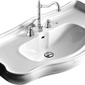 Производитель: Kerasan Модель: Retro 1047 - материал: фаянс - установка: на пьедестале, пьедестал в комплекте - форма: нестандартная - отверстия для монтажа смесителя: 1 отверстие по центру - отверстие контроля перелива: есть Описание