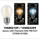 | г. Москва, г. Екатеринбург, ул. Татищева, д. 88 Gauss Лампа светодиодная филаментная Black Filament 9Вт P45 шар 4100К нейтр. бел. E27 710лм 105802209 pe686824 Мин.кол-во:24 Кратность:1 Доставка — сДЕК. Из Москвы. | 262 руб. | В магазин | |