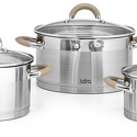набор кастрюль • нержавеющая сталь • покрытие отсутствует • крышка стеклянная