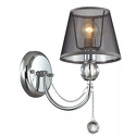 Бра стиля модерн для гостиной, кабинета или спальни имеет размеры 150x290x250 мм. Арматура светильника окрашена в хромовый цвет. Лампы в комплекте - отсутствуют. В светильнике применяются лампы накаливания или светодиодная LED-лампа. Цвет плафонов - неокрашенный, черный, с прозрачной поверхностью. Материал плафонов - органза, хрусталь. Класс электробезопасности - I, степень пылевлагозащиты (IP) - 20. Максимальная мощность лампы (Вт) - 40. Светильник размещается на стене.