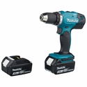 Дрель-шуруповерт аккумуляторная Makita DDF453RFE, быстрозажимной патрон, 13 мм, 0 об/мин. — 400, 42 Н*м / 27 Н*м, работает на аккумуляторах Аккумуляторная дрель-шуруповерт Makita DDF453RFERONG> отлично подойдет для эффективной работы с крепежными элементами, а также сверления отверстий в ограниченных пространствах. Быстрозажимной патрон делает замену бит и насадок простой и быстрой операцией. Эргономичная форма рукоятки, а также прорезиненные накладки позволяют оператору надёжно удерживать инструмент в руке. Небольшой вес и отличная сбалансированность дрели делают работу пользователя более комфортной и менее утомляемой. Поставляемая в комплекте с устройством сумка делает более удобным транспортировку и хранение инструмента.