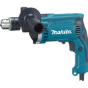 Makita HP 1620 – это дрель компактных размеров. Мощность двигателя составляет 650 Вт, это позволяет инструменту совершать 2800 оборотов за одну минуту при работе на холостом ходу. Позволяет производить сверление с ударом, что востребовано при работе с вязкими или жесткими материалами. Это дает возможность производить работу практически со всеми известными матералами. Предусмотрена функция реверса, активация которой задает вращению обратное направление. Это годится для выкручивания застрявшего бура. Делать отверстия нужной глубины позволяет специальный ограничитель. У вала ключевого патрона есть специальная блокировка, позволяющая использовать различные насадки и сверла. Вентиляционные отверстия находятся около быстро нагревающихся элементов, предотвращая их перегрев и выход из строя.