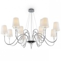 Массивный декор стеклянных граней выделяет светильники этой серии среди других моделей. Хромированную металлическую арматуру мягко оттеняют белые хлопковые абажуры. Рассеивая свет, они дарят уютное, атмосферное освещение. Классическая грациозность светильников выражена в элегантных изгибах рожков и подчеркнутой гармонии оттенков. Серия включает регулируемую по высоте подвесную люстру на 12 плафонов, две настольные лампы, а также бра на 1 и 3 плафона.