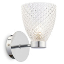 Бра стиля модерн для гостиной, кабинета или спальни имеет размеры 110x175x151 мм. Арматура светильника окрашена в хромовый цвет. Лампы в комплекте - отсутствуют. В светильнике применяются галогеновая лампа или светодиодная LED-лампа. Цвет плафонов - неокрашенный, с прозрачной, рельефной поверхностью. Материал плафонов - стекло. Класс электробезопасности - I, степень пылевлагозащиты (IP) - 20. Максимальная мощность лампы (Вт) - 40. Светильник размещается на стене.