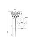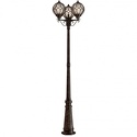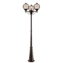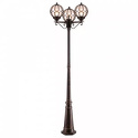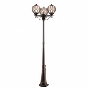 Фонарный столб стиля классика для улицы имеет размеры 540x2150 мм. Арматура светильника окрашена в золотой с патиной цвет. Лампы в комплекте - отсутствуют. В светильнике применяются лампы накаливания или светодиодная LED-лампа. Цвет плафонов - янтарный, с матовой поверхностью. Материал плафонов - стекло. Класс электробезопасности - I, степень пылевлагозащиты (IP) - 65. Максимальная мощность лампы (Вт) - 100. Светильник размещается на земле.