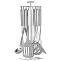 Комплектация: приборов 6 шт, подставка • Аксессуары: овощечистка, орехокол, чеснокодавка, нож для пиццы • Открывачки: консервный нож, штопор