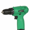 Производитель: Oasis Модель: AS-12V - Тип: дрель-шуруповерт, пистолетная - Обороты: 1350 об/мин, скоростей 2 шт - Патрон: быстрозажимной, диаметр 10 мм - Функции: реверс, подсветка, тормоз двигателя - Питание: аккумулятор, 12 В, Li-Ion Описание