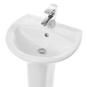 Материал: фаянс • Установка: на пьедестале, пьедестал в комплекте • Форма: полукруглая • Отверстия для монтажа смесителя: 1 отверстие по центру • Отверстие контроля перелива: есть • Глубина: 41.5 см • Ширина: 48 см • Вес: 18 кг