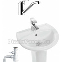 Производитель: Санита Модель: Аттика-48 - материал: фаянс - установка: на пьедестале, пьедестал в комплекте - форма: полукруглая - отверстия для монтажа смесителя: 1 отверстие по центру - отверстие контроля перелива: есть Описание