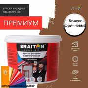 Краска ВД фасадная BRAITON Премиум Сверхпрочная 4 кг. Цвет Бежево-коричневый RAL 8024 для наружных и внутренних работ для дерева по бетону, для минеральных поверхностей и штукатурке,