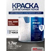 Краска для пола по бетону 1.7 кг , оксид красный RAL 3009 , лакра PROF IT