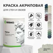 Краска для стен моющаяся: Тени леса (серо- бежевый) 1,5 кг. / BIsmo Interior: интерьерная, без запаха, быстросохнущая, матовая, акриловая, водоэмульсионная (А)