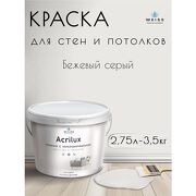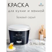WEISS Краска акриловая, моющаяся для стен и влажных помещений, кухни и ванной комнаты 2.75л DEW382 Бежевый серый