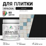 Акриловая краска для плитки Malare Ceraflex для керамической и кафельной плитки, стен в кухне и ванной, моющаяся быстросохнущая без запаха, матовая, черный, 0.5 кг