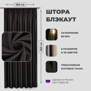 1 245 руб. 2 241 руб. В магазин SHTORA.LAND Штора для комнаты 150x270 см Блэкаут однотонный матовый Shtoraland на ленте для крючков, одна портьера для гостиной, спальни, детской. Черный цвет