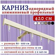 Нет бренда Карниз для штор 420 см однорядный настенный алюминиевый профильный ваниль, металл, гардина, без боковин Топ Карниз