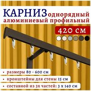 10 536 руб. 21 072 руб. В магазин Нет бренда Карниз для штор 420 см однорядный настенный алюминиевый профильный коричневый, металл, гардина, без боковин Топ Карниз
