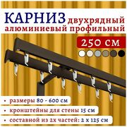 11 543 руб. 23 086 руб. В магазин Нет бренда Карниз для штор 250 см двухрядный настенный алюминиевый профильный коричневый, металл, гардина, без боковин Топ Карниз