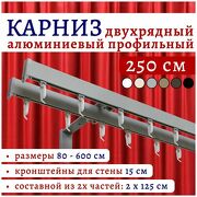 11 543 руб. 23 086 руб. В магазин Нет бренда Карниз для штор 250 см двухрядный настенный алюминиевый профильный серебряный металлик, металл, гардина, без боковин