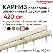 10 827 руб. 19 489 руб. В магазин Карниз для штор 420 см двухрядный потолочный алюминиевый профильный ваниль, металл, гардина, Уют, без боковин