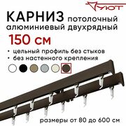 3 810 руб. 6 858 руб. В магазин Карниз для штор 150 см двухрядный потолочный алюминиевый профильный коричневый, металл, гардина, Уют, без боковин