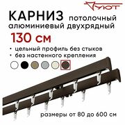 3 310 руб. 6 620 руб. В магазин Карниз для штор 130 см двухрядный потолочный алюминиевый профильный коричневый, металл, гардина, Уют, без боковин