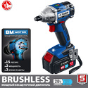 Тип: гайковерт, пистолетная • Обороты: 1000/1200/2400 об/мин • Патрон: квадрат, 1/2 " • Функции: ударный режим, реверс, подсветка, тормоз двигателя • Питание: аккумулятор, 20 В, Li-Ion